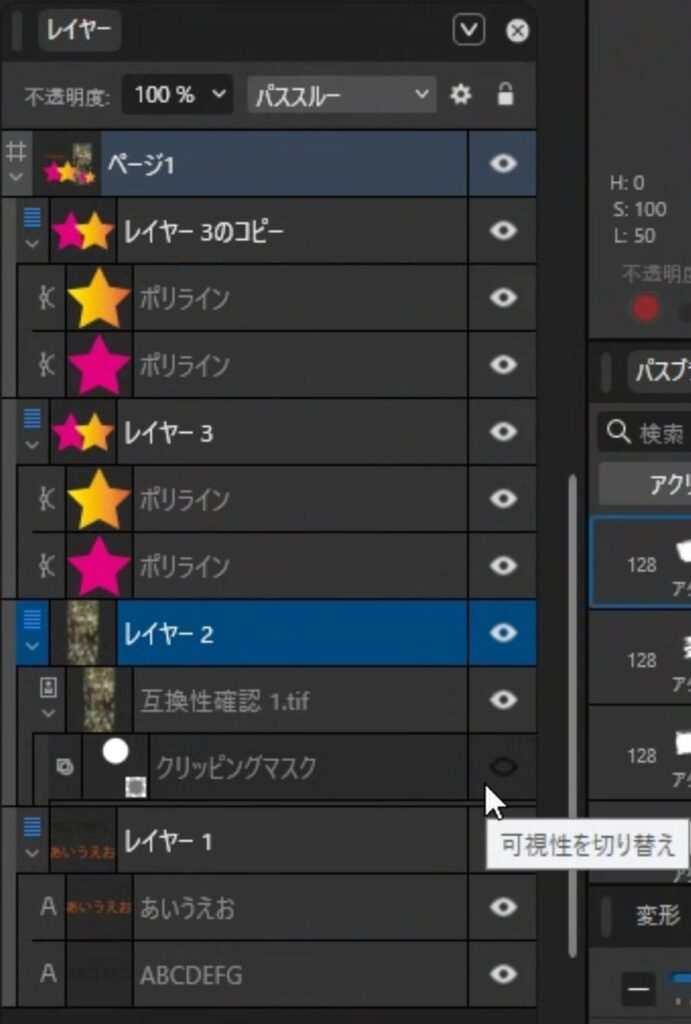 クリッピングマスクもちゃんと読み込まれていました。