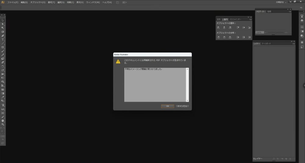 不明なイメージング要素が見つかりましたという画面が出ますが、OKをクリックし読み込ますとちゃんと開きました。
