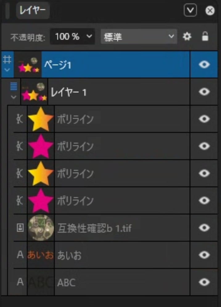 IllustratorとAffinityを交互にファイルの読み込みと保存を繰り返してみると、レイヤーの状態は変化がありますが、見た目については修正通りの状況です。